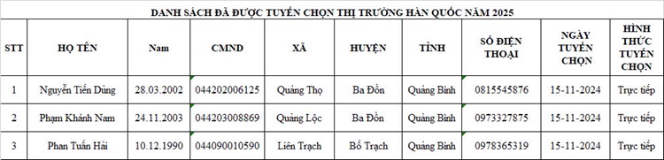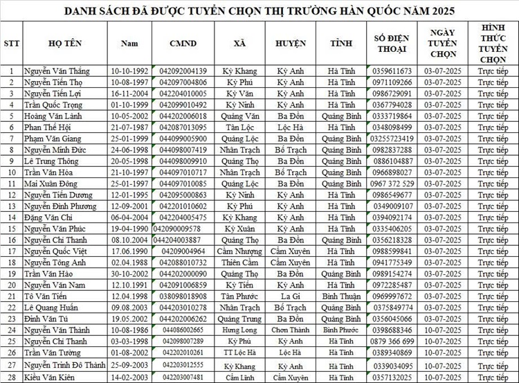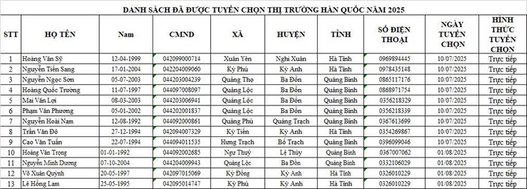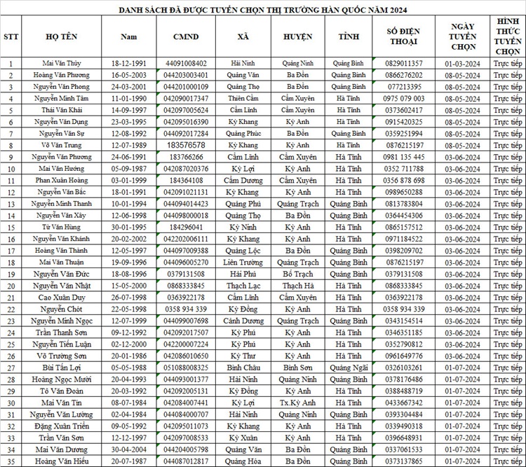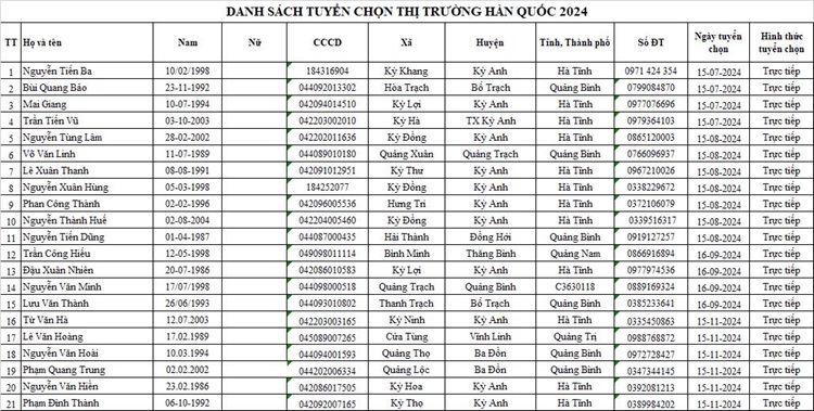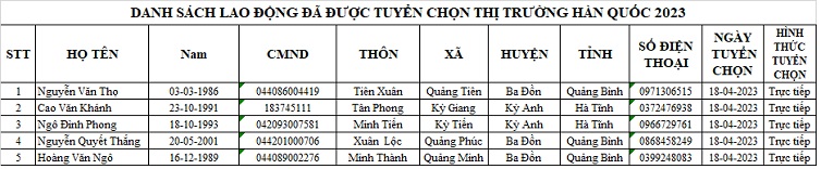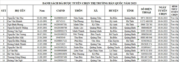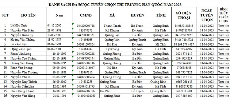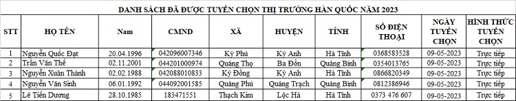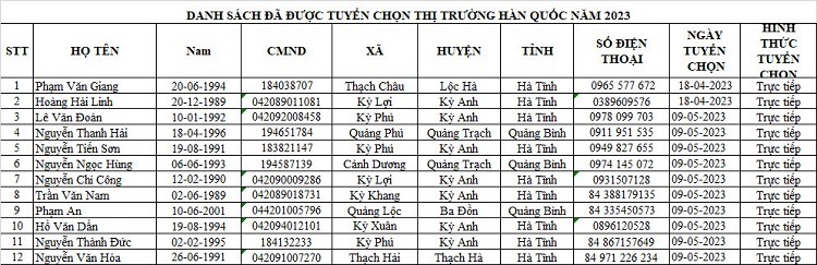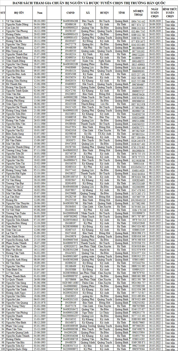 DANH SÁCH THAM GIA CHUẨN BỊ NGUỒN VÀ ĐƯỢC TUYỂN CHỌN NGUỒN THỊ TRƯỜNG HÀN QUỐC14:07 - 25/02/2023Tuyển dụng, Chia sẻ: