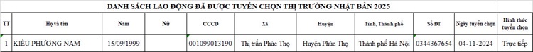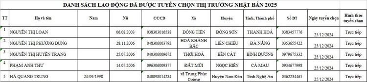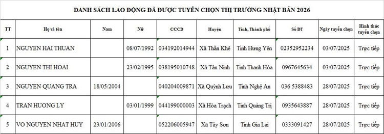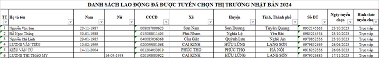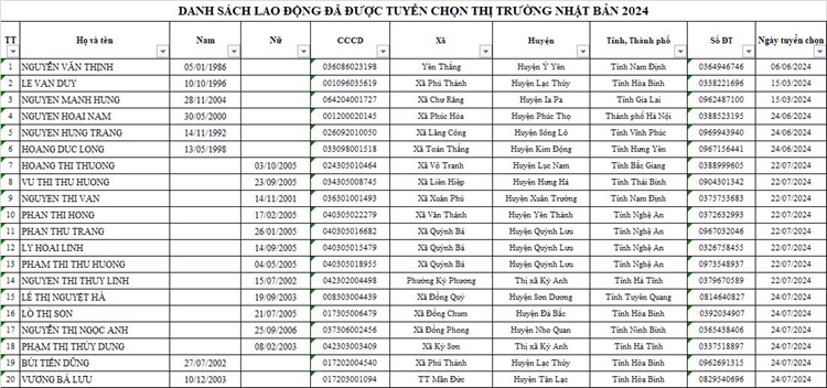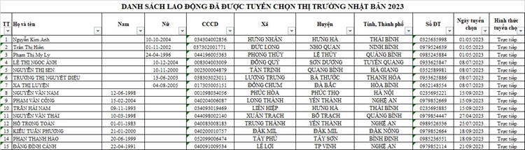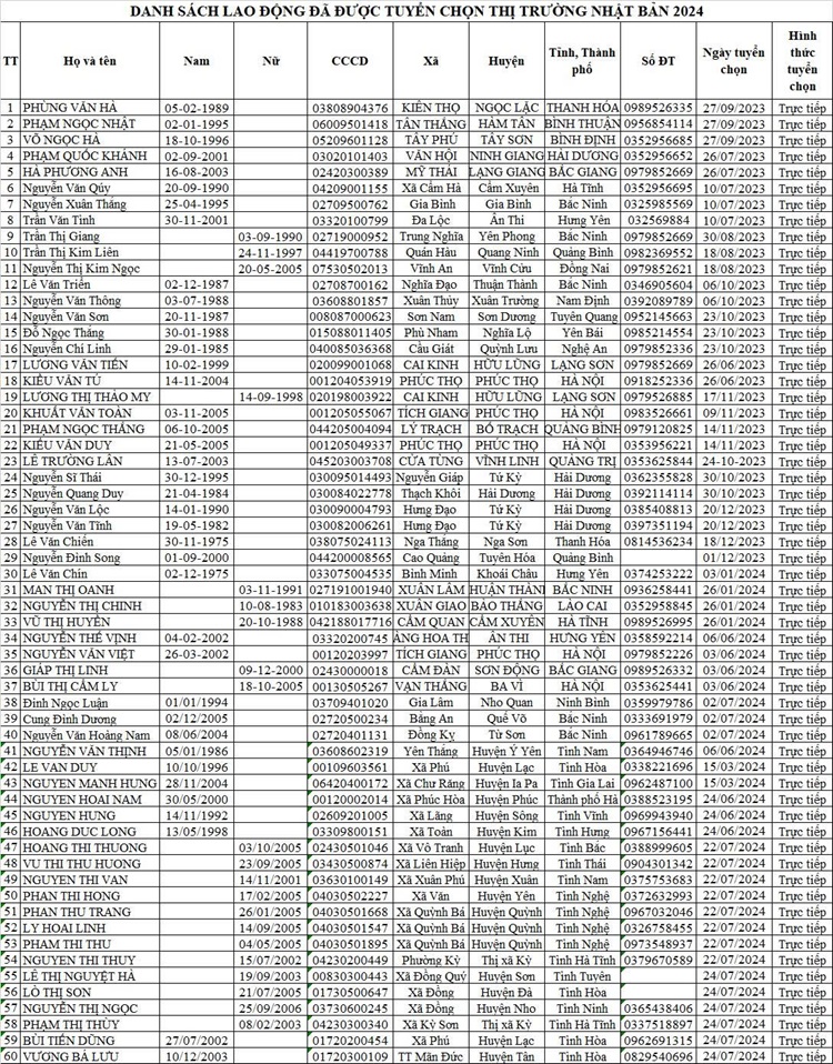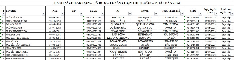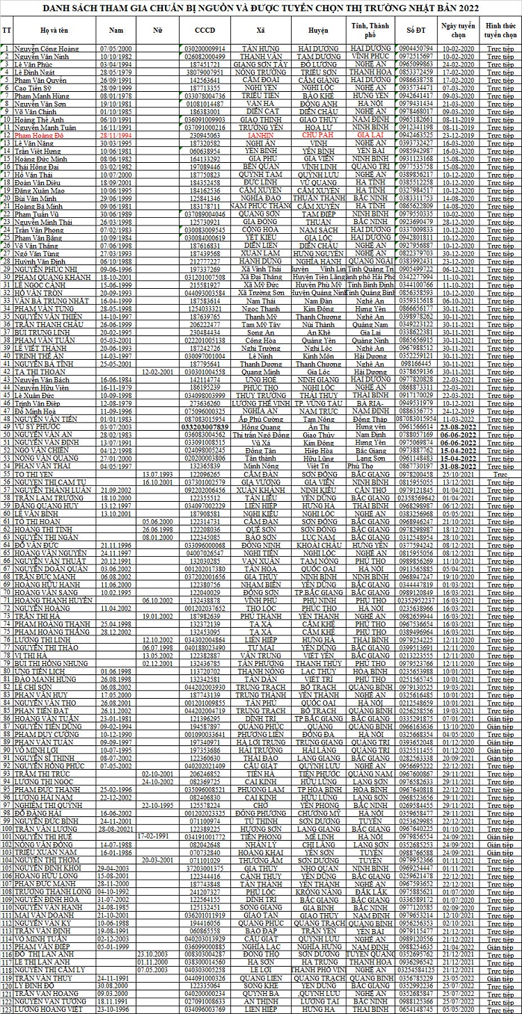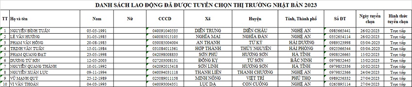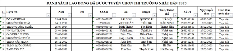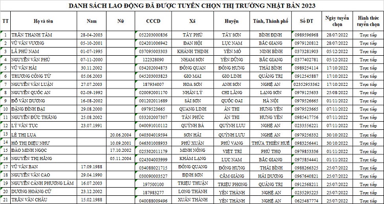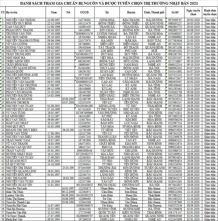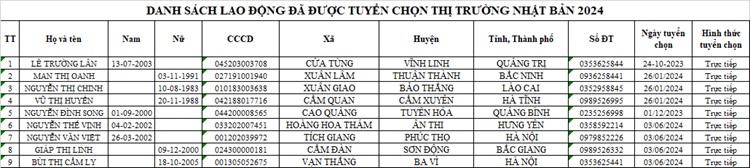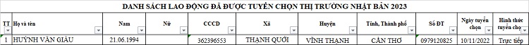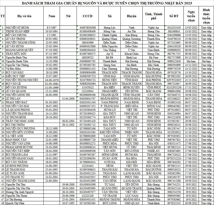 DANH SÁCH THAM GIA CHUẨN BỊ NGUỒN VÀ ĐƯỢC TUYỂN CHỌN NGUỒN THỊ TRƯỜNG NHẬT BẢN14:07 - 25/02/2023Tuyển dụng, Chia sẻ: