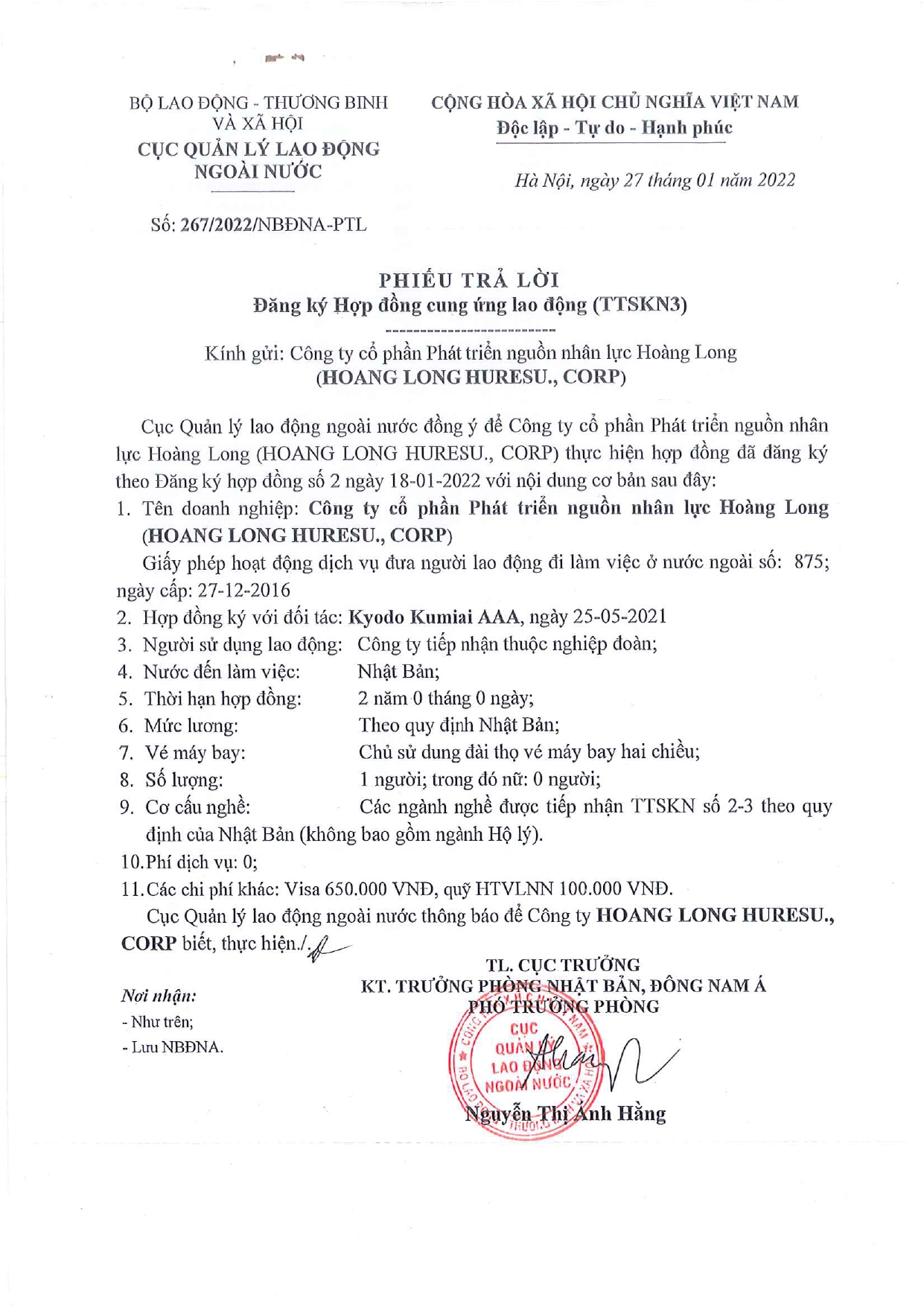 HOANG LONG HUMAN RESOURCES SUPPLY COMPANY