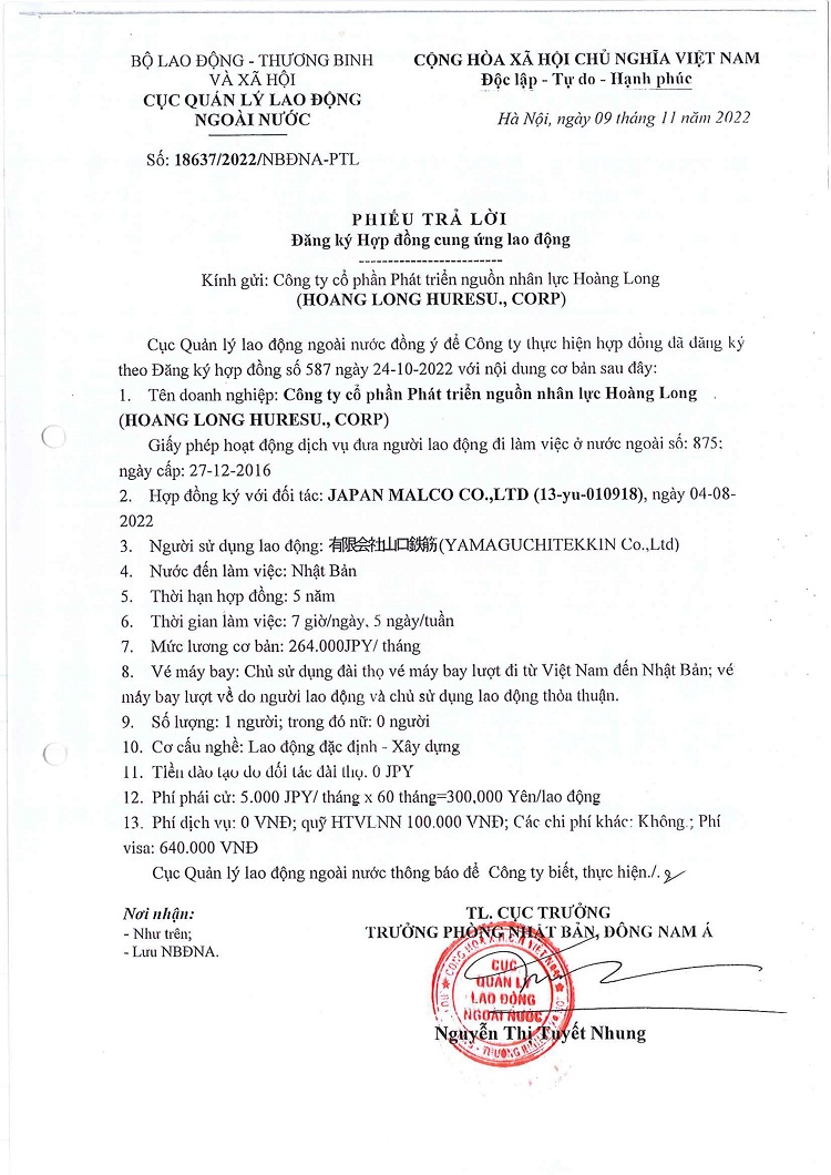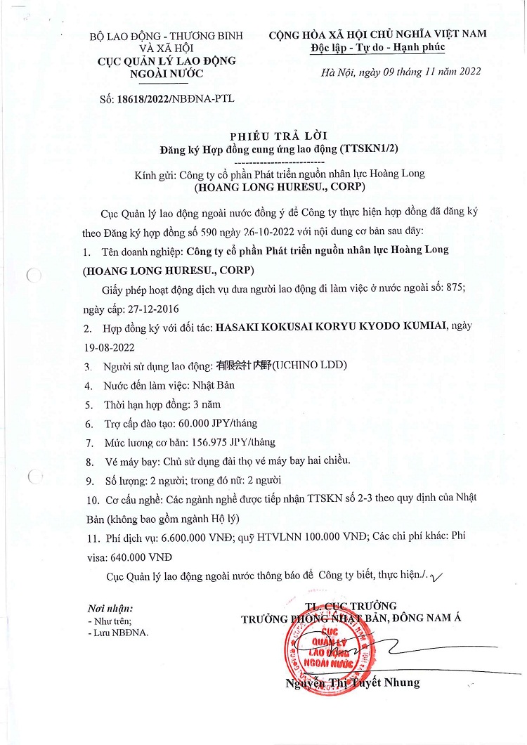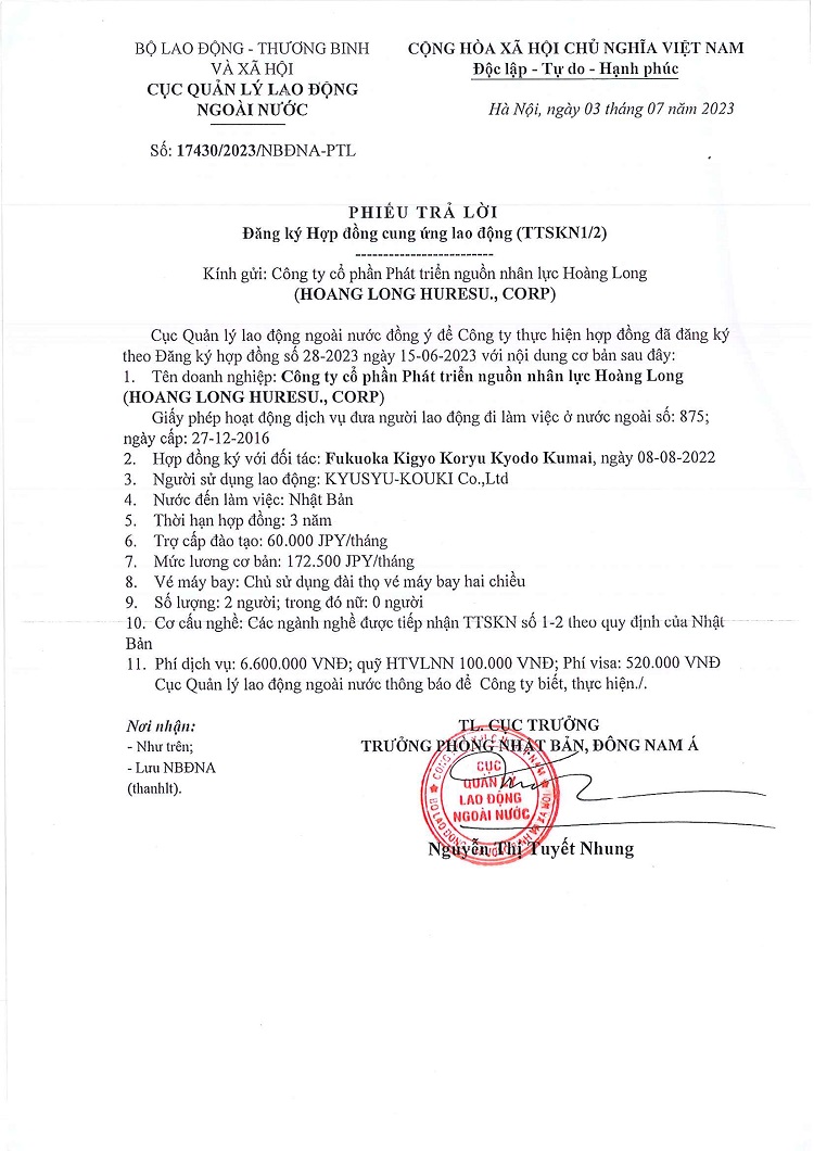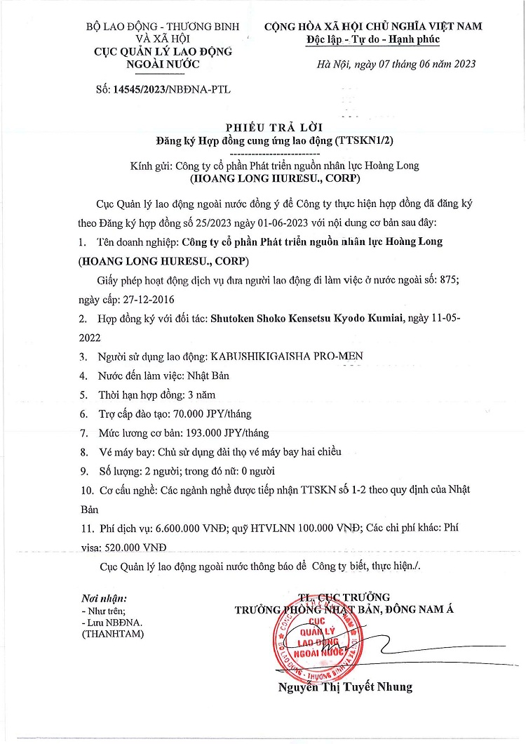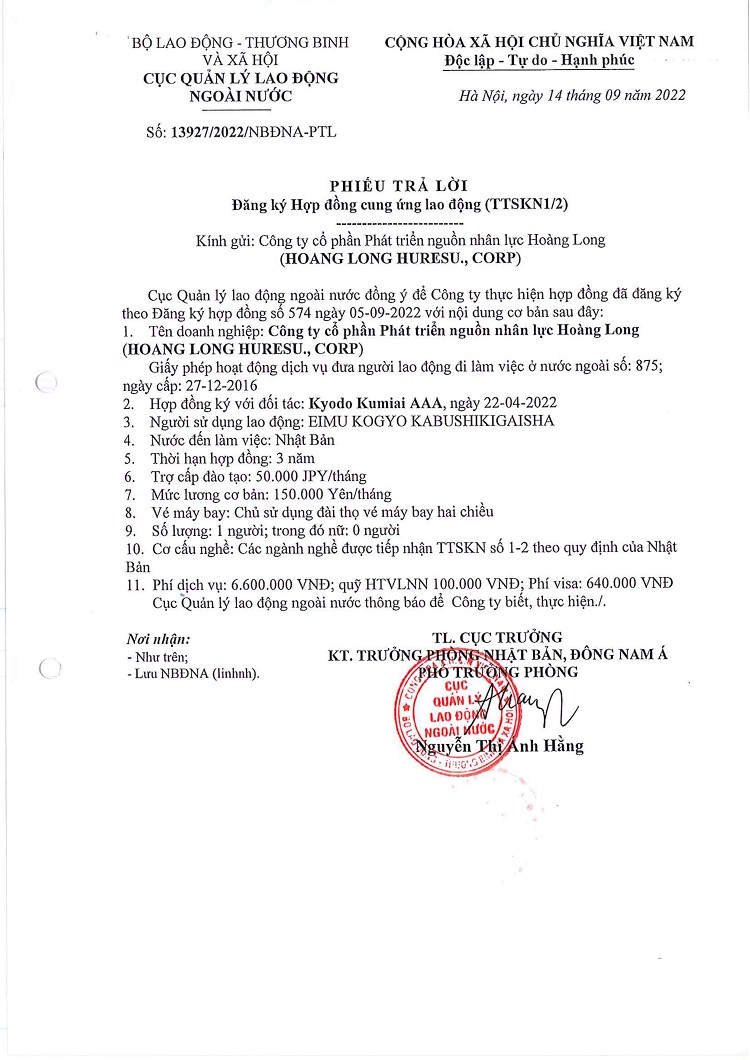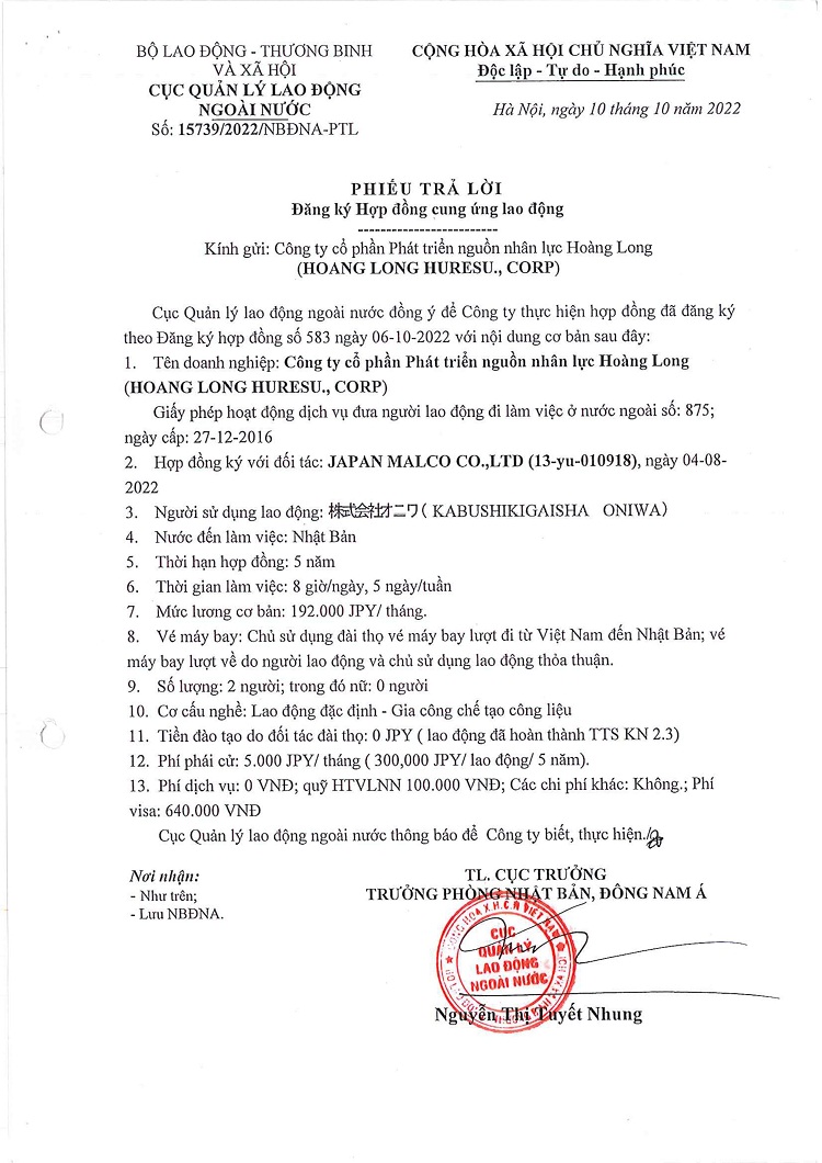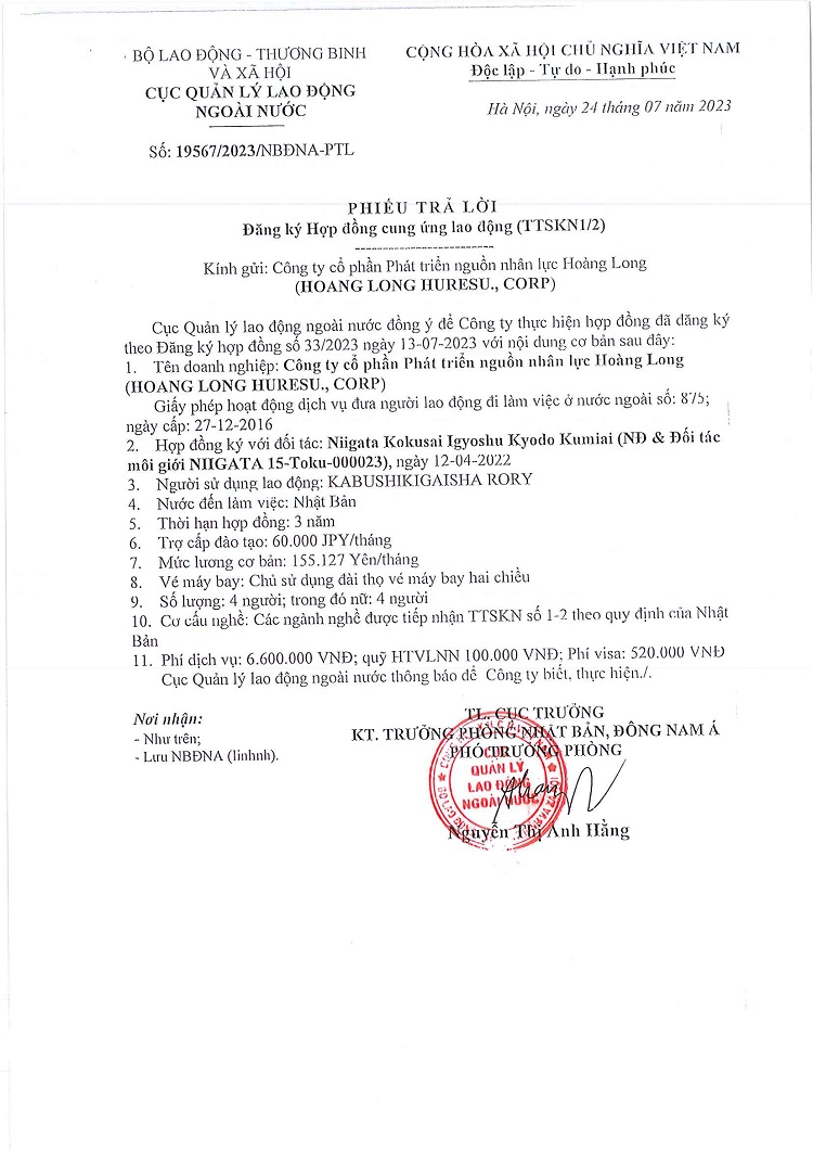 CÔNG TY CỔ PHẨN PHÁT TRIỂN NGUỒN NHÂN LỰC HOÀNG LONG