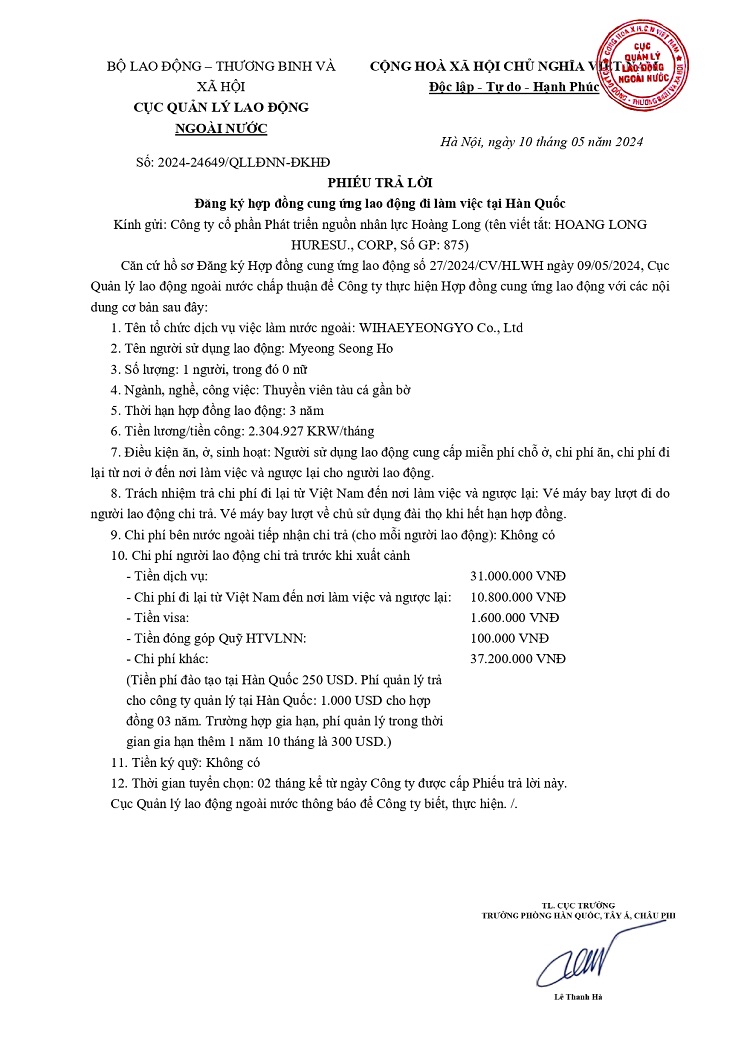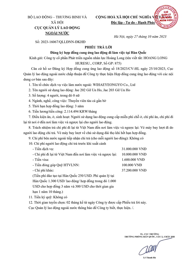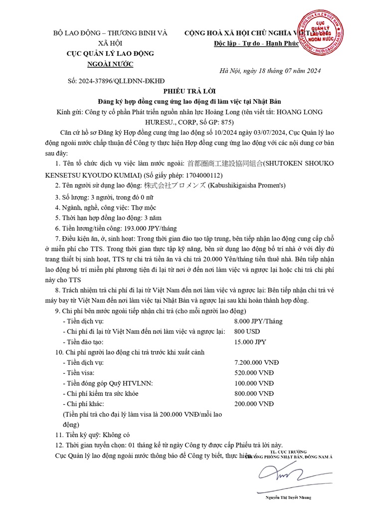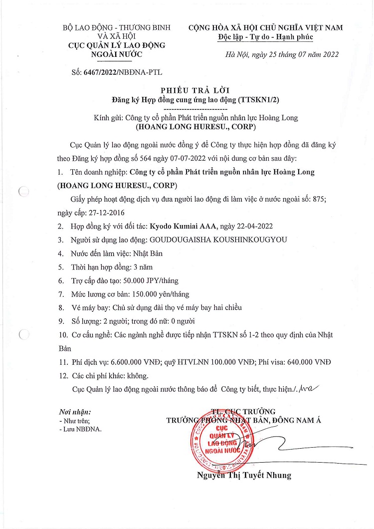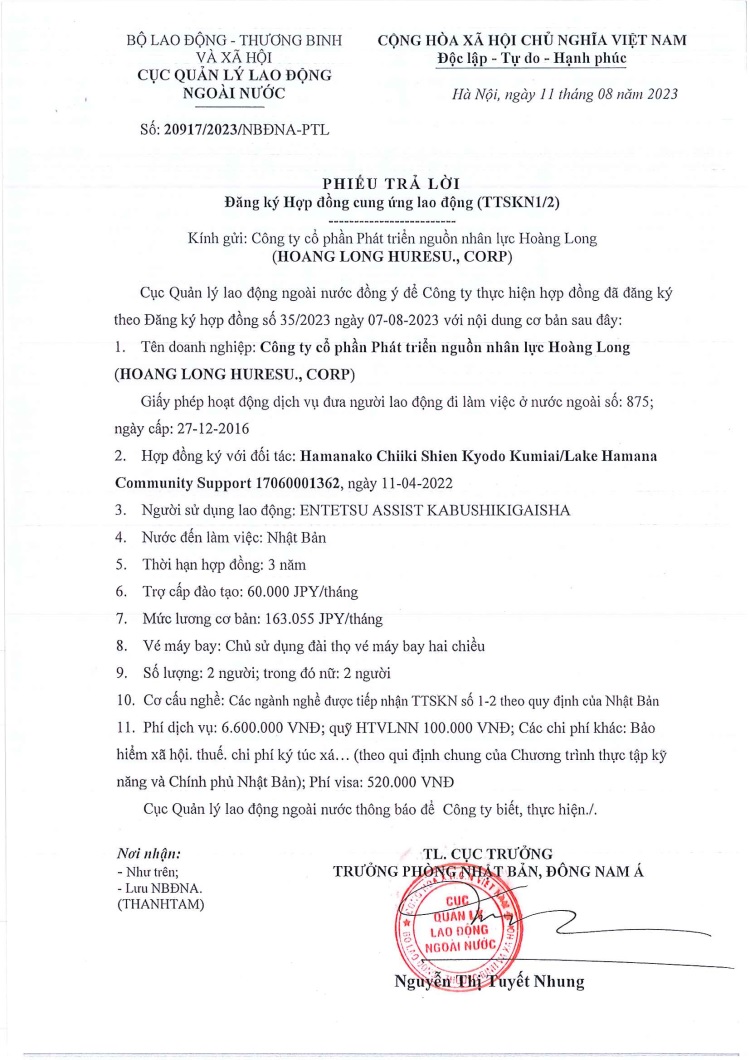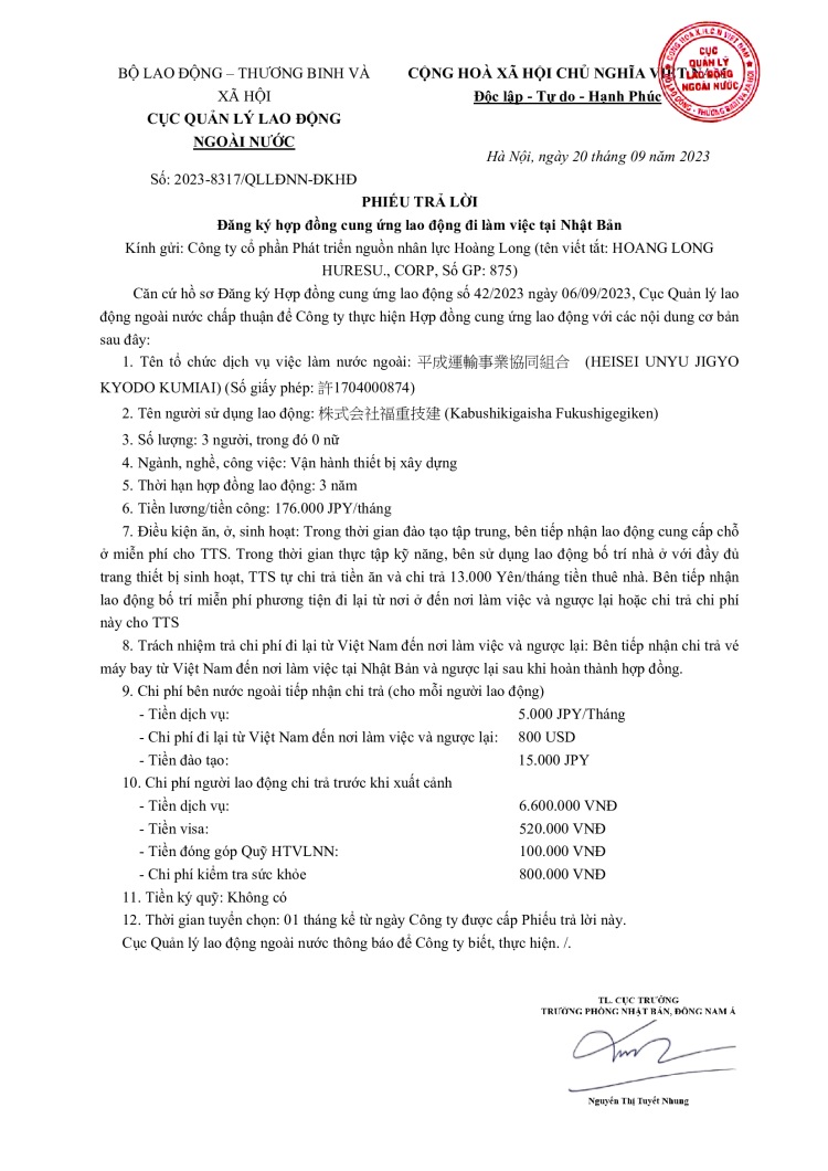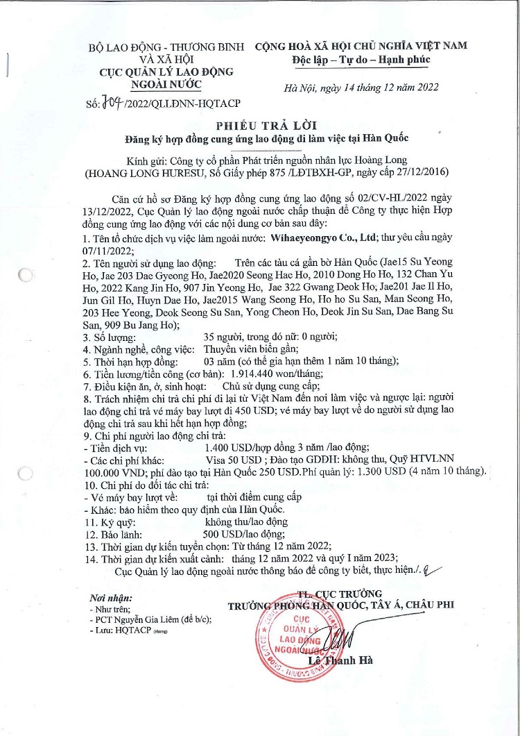 CÔNG TY CỔ PHẨN PHÁT TRIỂN NGUỒN NHÂN LỰC HOÀNG LONG