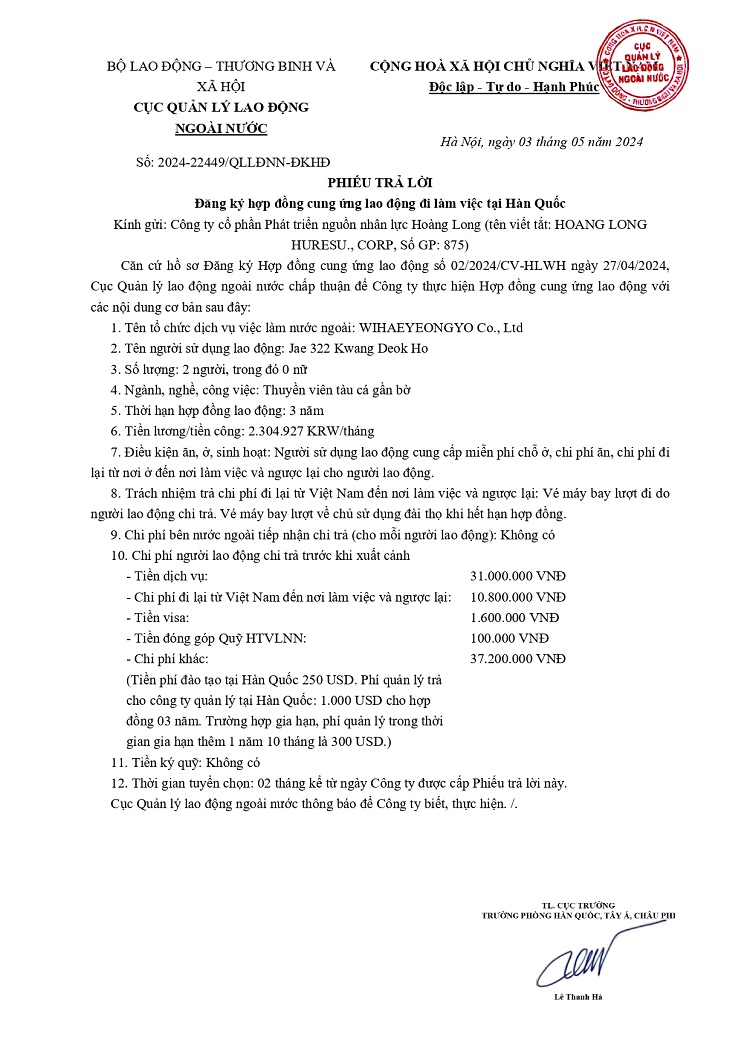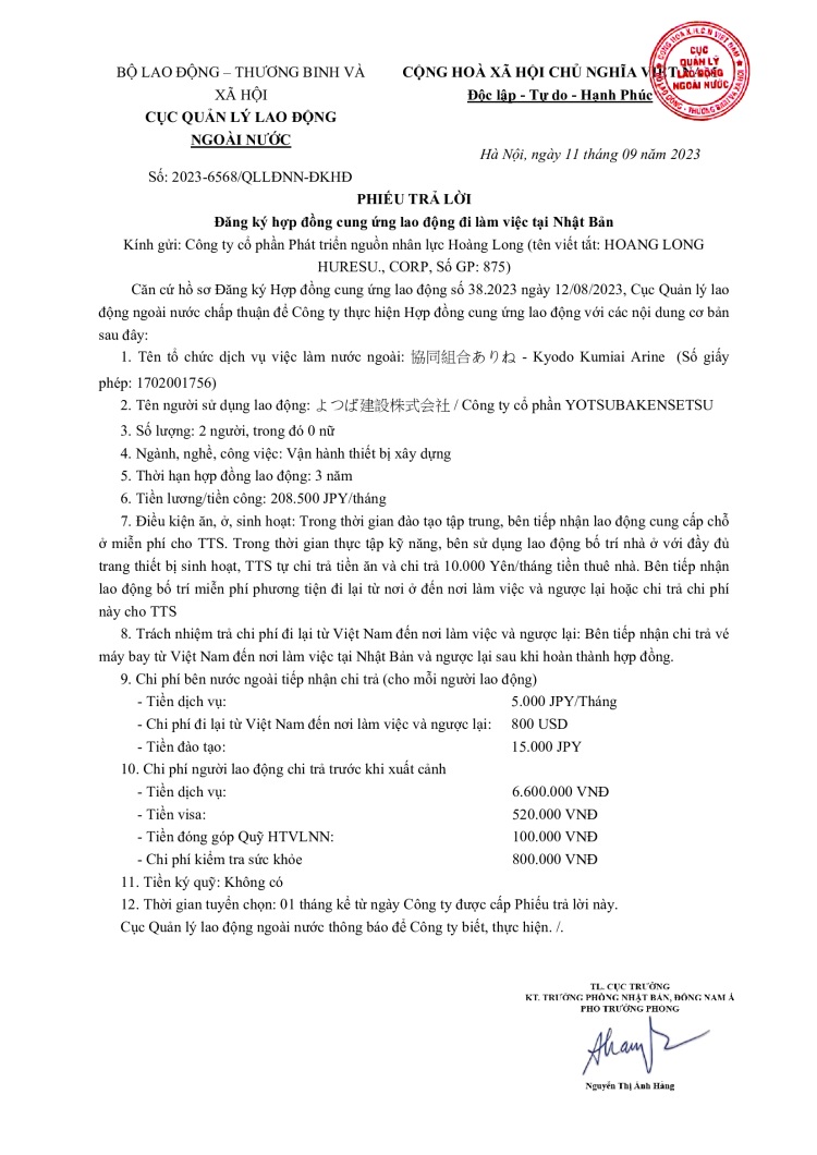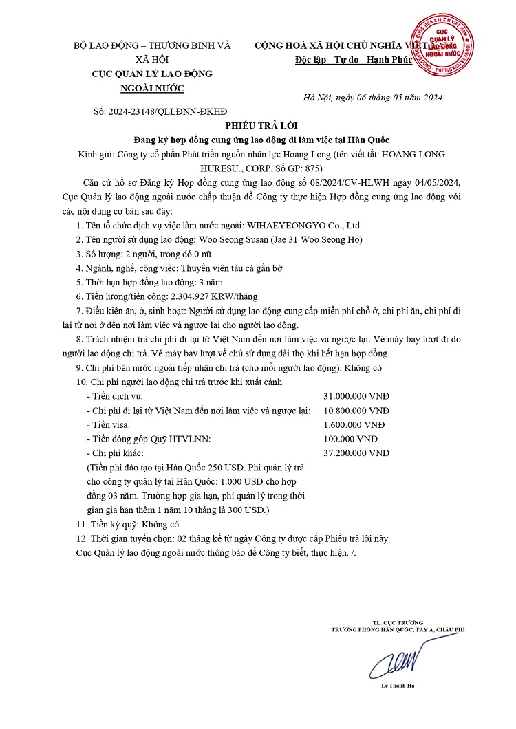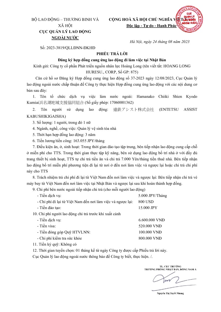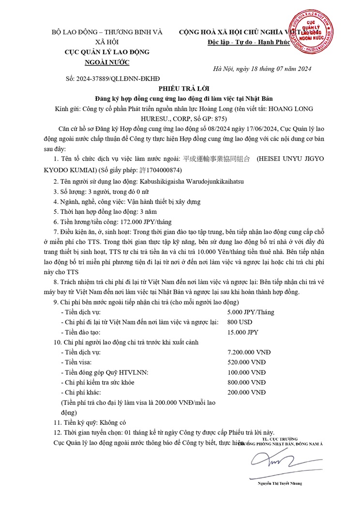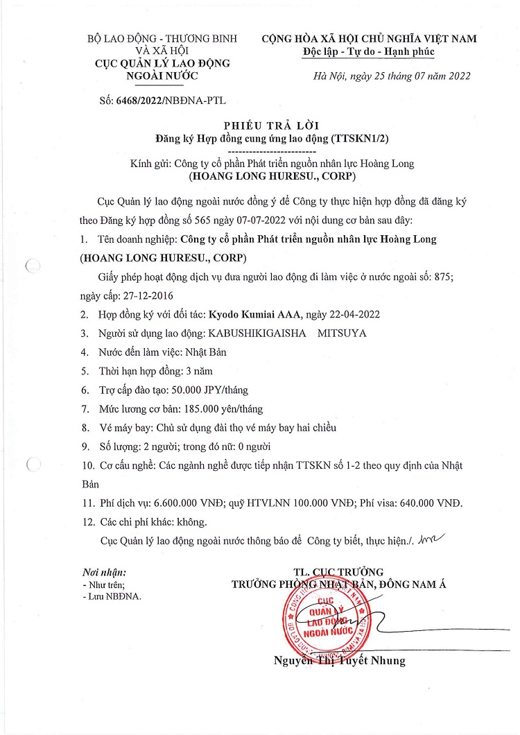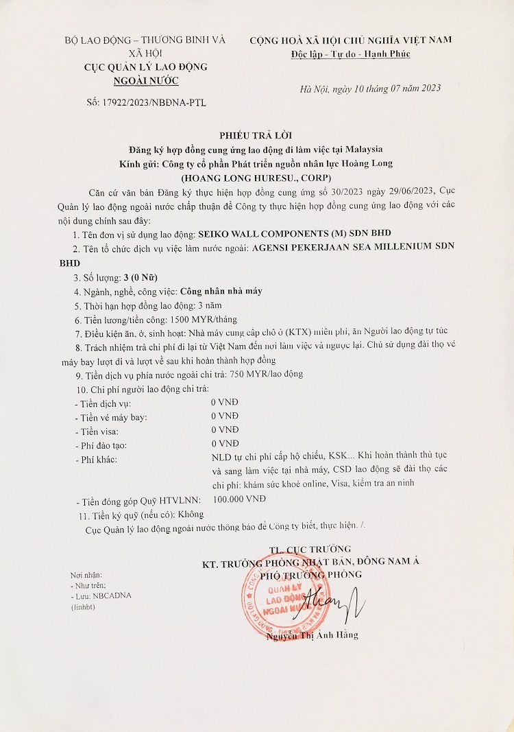 CÔNG TY CỔ PHẨN PHÁT TRIỂN NGUỒN NHÂN LỰC HOÀNG LONG