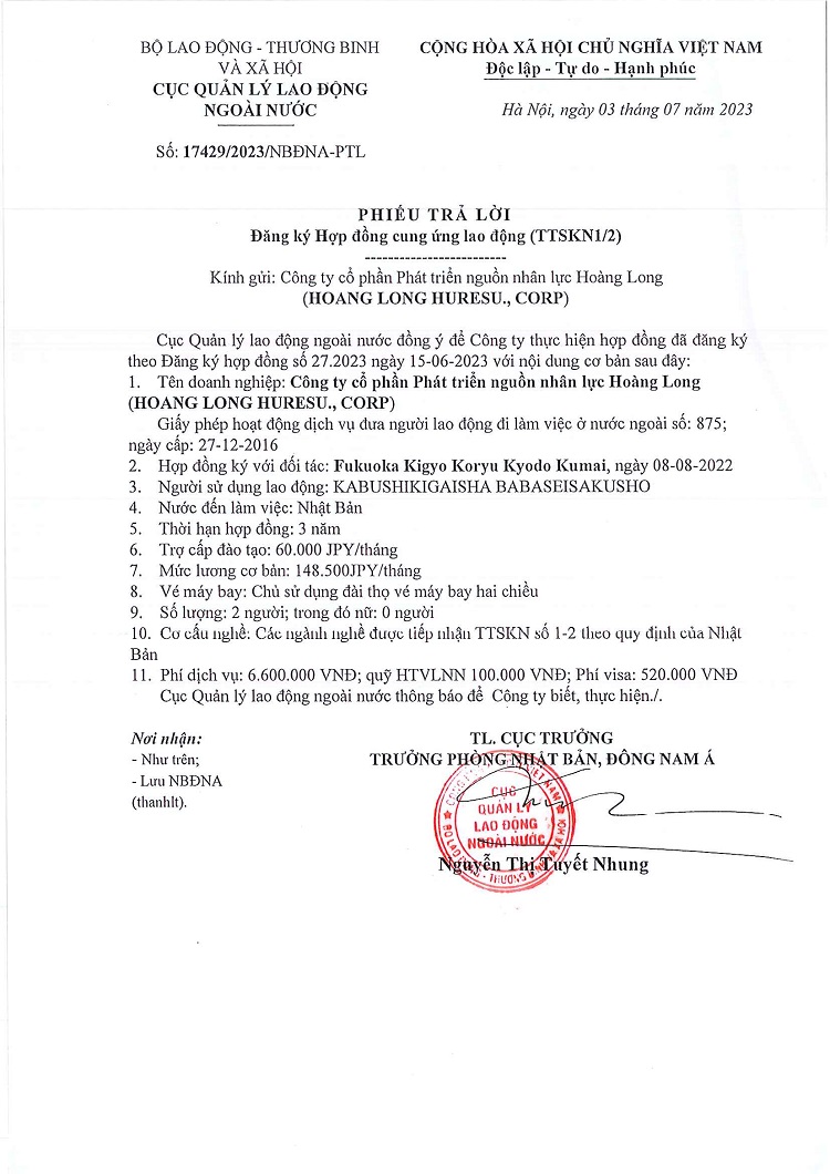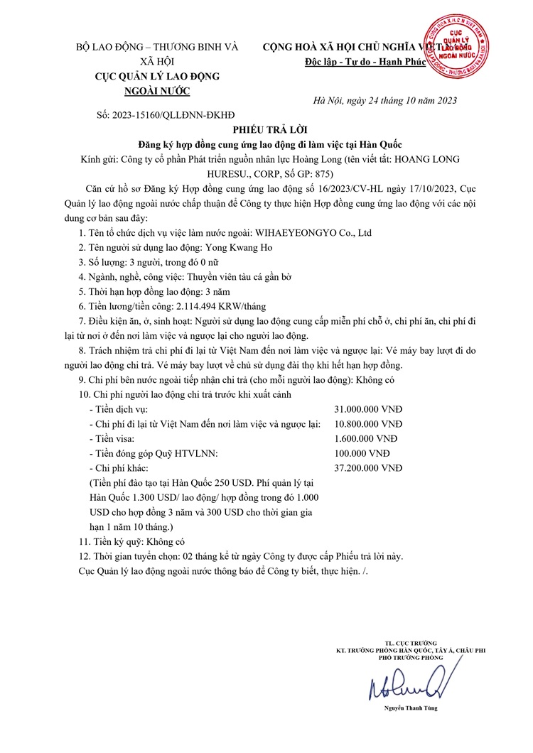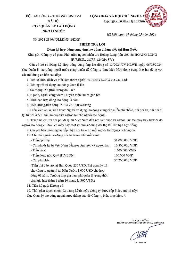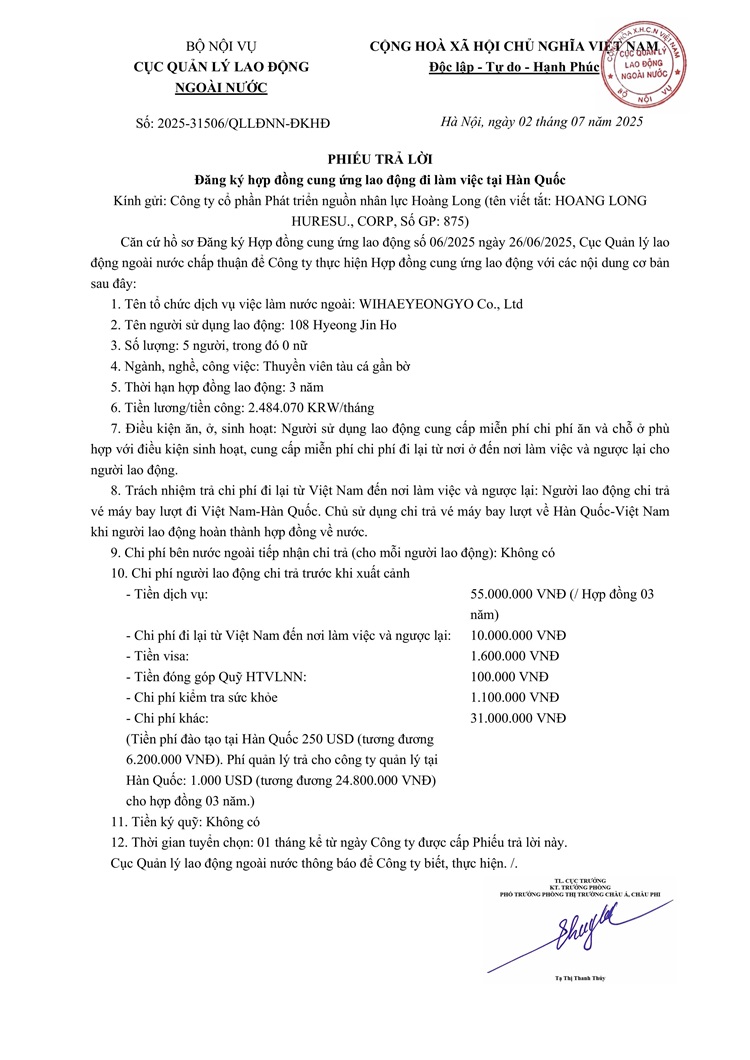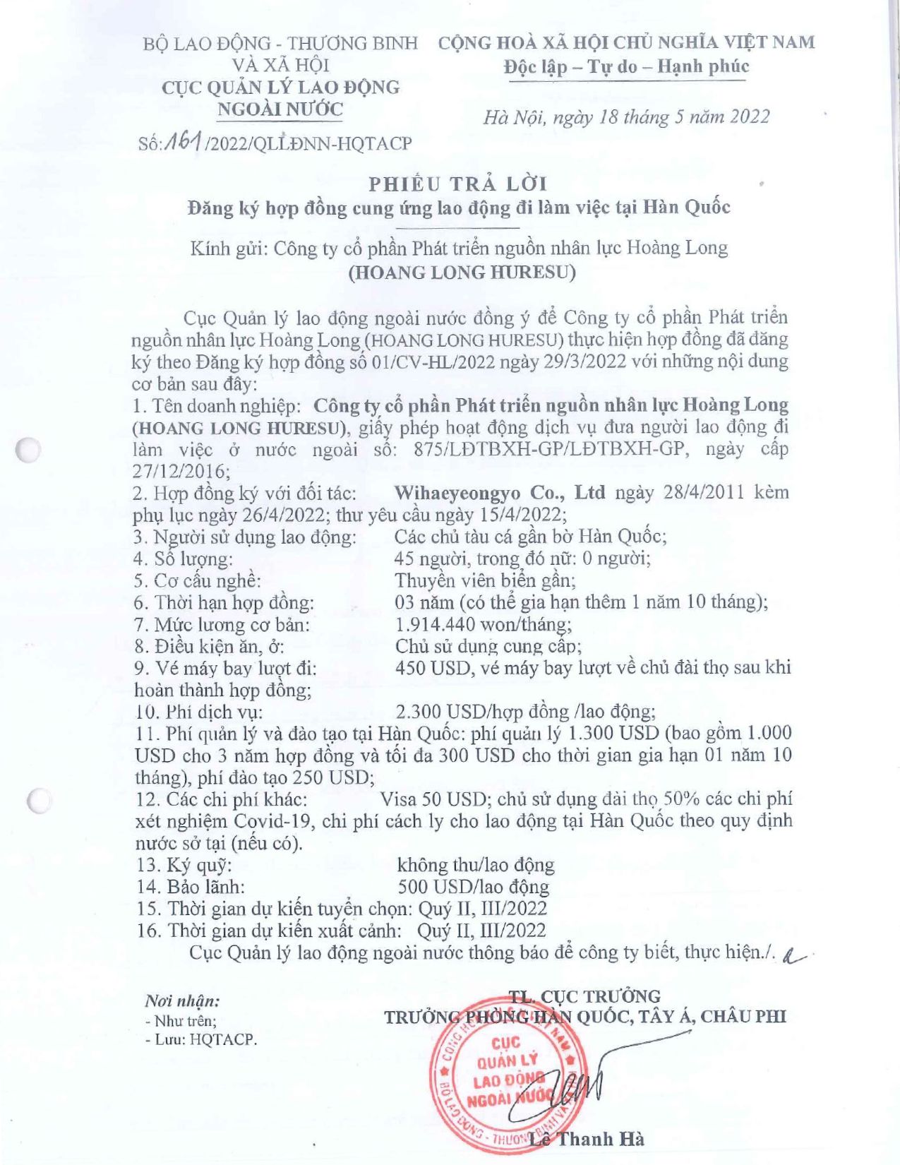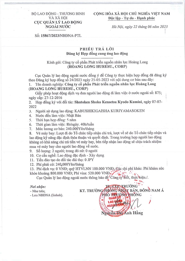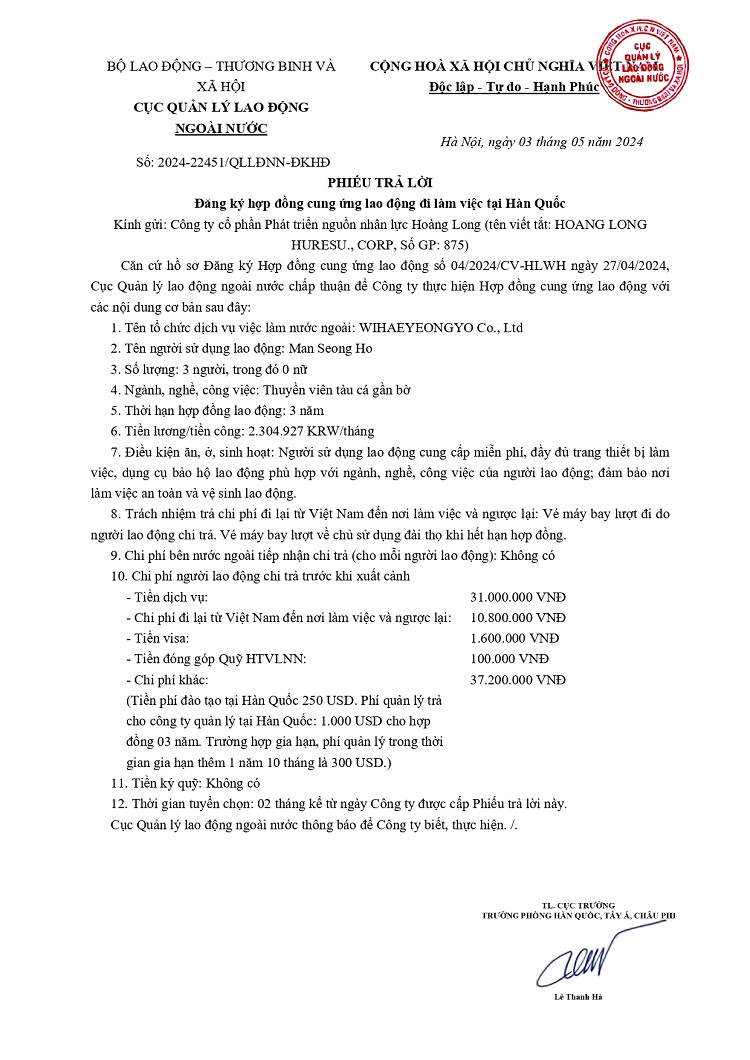CÔNG TY CỔ PHẨN PHÁT TRIỂN NGUỒN NHÂN LỰC HOÀNG LONG